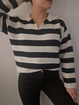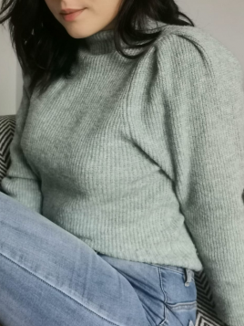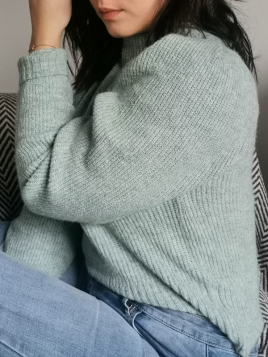 Pull manches longues Col légèrement montant Épaules bouffantes Le pull n'est pas très long Existe aussi en Gris Disponible en S/M et en M/L Notre modèle mesure 1m60 et porte la taille S/M