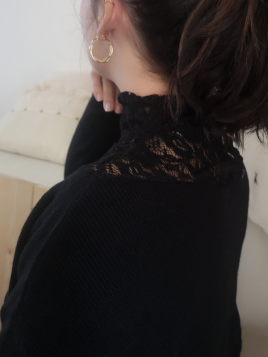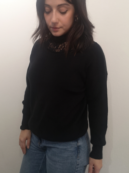 Pull col montant Col en dentelle, fermeture par 5 boutons dans la nuque Existe en noir uniquement Taille unique Notre modèle mesure 1m60 et porte la habituellement une taille S/M
